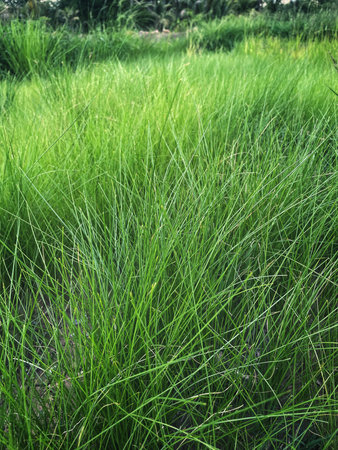 Image of fresh green grass background with bright yellow sun light, rural field, earth and ecology, sunny day, outdoors in summertime, spring nature