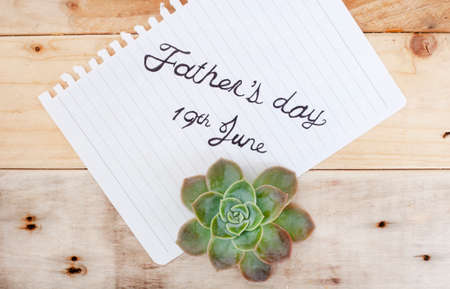 Father’s Day 19 June handwritten on notepad with rustic background