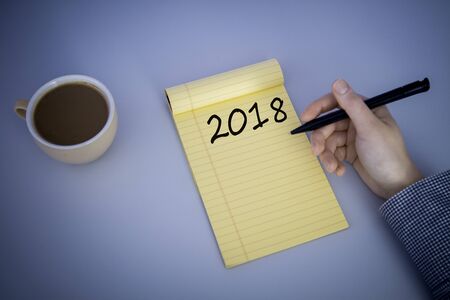 Business concept. Top view notebook writing Good Bye 2018