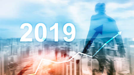2019 Predictions, business motivational inspirational quotes, words typography top view lettering concept