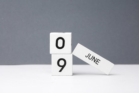 White block calendar with the date June 9 on white-gray background. Deadline, planning, business concept