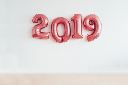 Christmas New Year 2019 numbers balloons. Celebration, holiday.