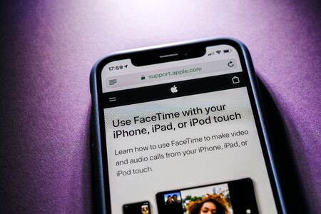 Paris, France - Jan 30, 2018: Apple iPhone XS with FaceTime app description of advantages on the official Apple website