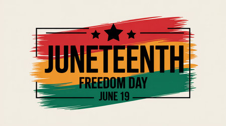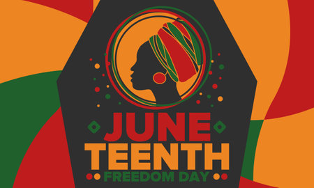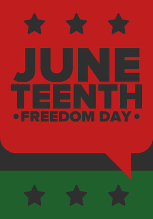Juneteenth Independence Day. Freedom or Emancipation day. Annual american holiday, celebrated in June 19. African-American history and heritage. Poster, greeting card, banner