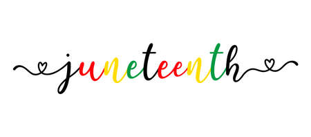 Hand sketched colorful JUNETEENTH word as banner. Lettering or modern calligraphy