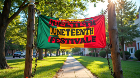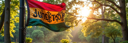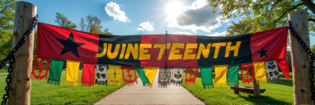 Vibrant juneteenth banner in sunlit park celebrating african american freedom and heritage. That the image is generated using AI.