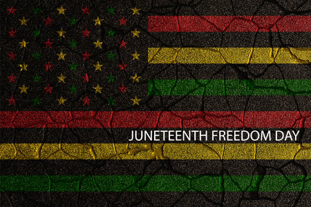 Alternative Juneteenth Flag painted on a cracked wall. Juneteenth National Independence Day. June 19. 3d-rendering