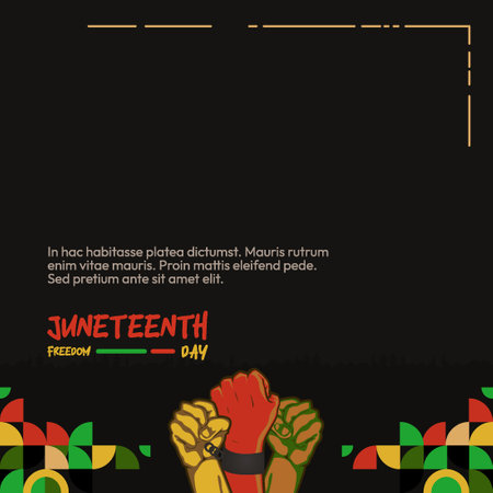 Striking poster for Juneteenth featuring colorful geometric illustrations. Ideal for commemorating freedom and festive greetings.
