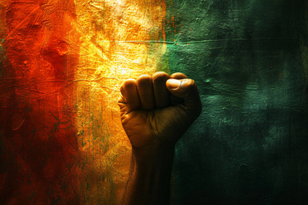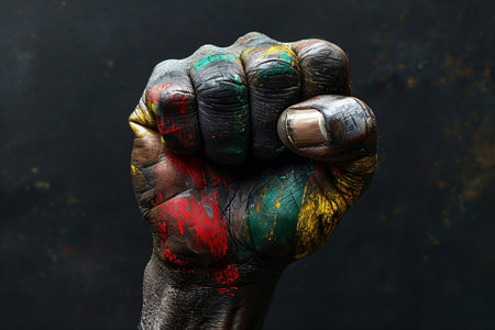 African American hand painted in Juneteenth colors raised in the air. Juneteenth Freedom Day Celebration. Juneteenth and african liberation day. Generative ai.