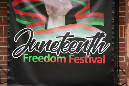Juneteenth Freedom Festival Sign at a local Festival