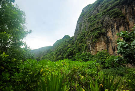 The shores of Thailand, cliffs with forests and bays of the sea.