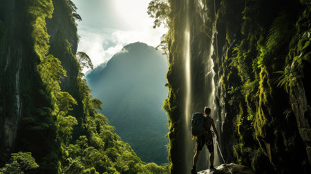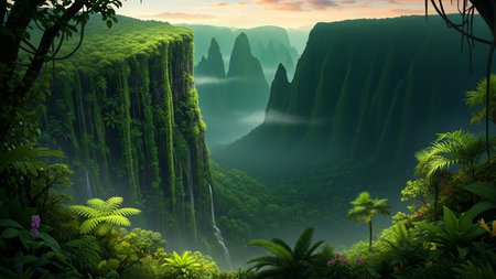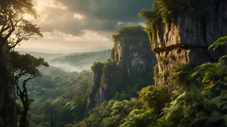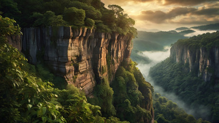 AI Generated. Lush Green Cliff Surrounded by Dense Jungle Vegetation