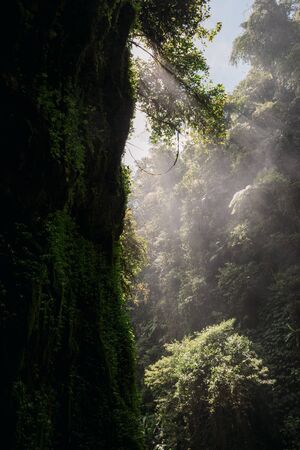 Nungnung Waterfall splashing in Bali Jungle, Indonesia