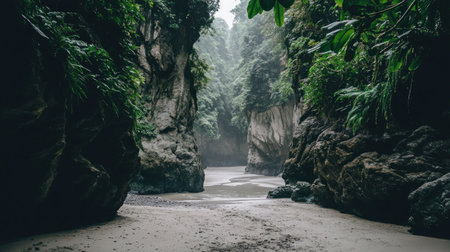 narrow beach cove surrounded by volcanic rocks and lush greenery --chaos 30 --ar 16:9 --v 6.1 Job ID: f2a0efb1-af1c-4f03-a98c-273c0ebdcfb0