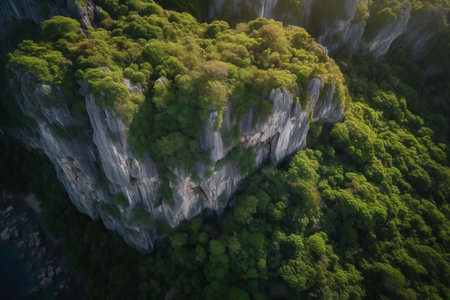 Majestic Limestone Cliffs Enveloped in Verdant Vegetation