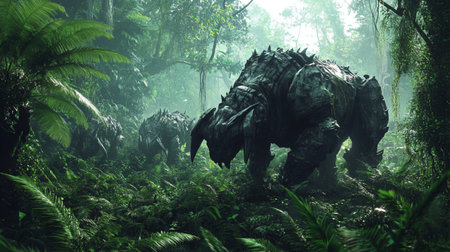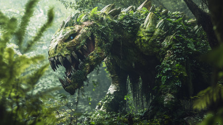 Dinosaur in the jungle. Fantasy, horror, fantasy concept.