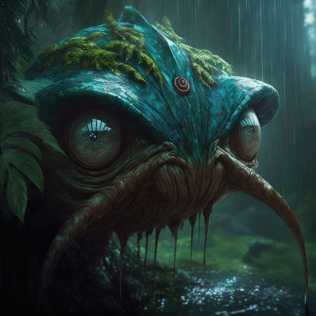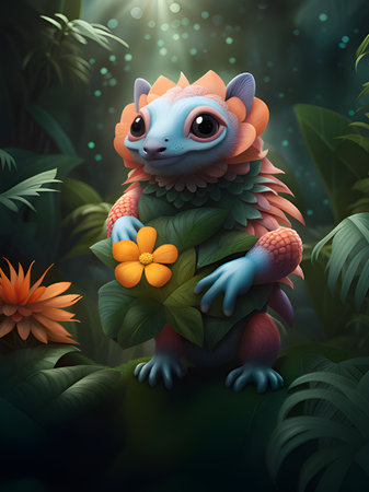 An AI-generated illustration of a fantasy animal character in a mysterious forest.