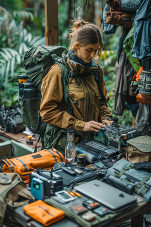 outdoor sports enthusiast, packing bag full of gear and supplies for the journey, created with generative ai