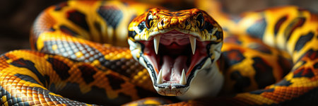 Close up of snake's head with it's mouth open. Generative AI.