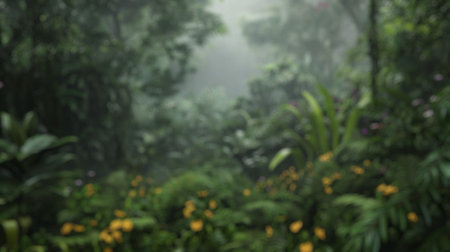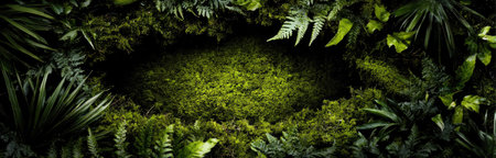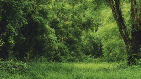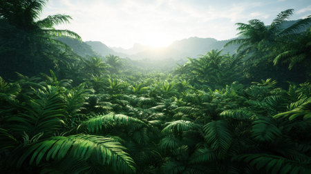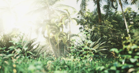 Lush green tropical forest with vibrant nature leaves, set against a beautifully bright background