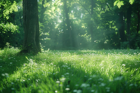 peaceful meadow with birdsong and gentle breeze, created with generative ai