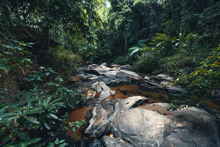 Stream flowing through tropical rainforest at Phu Soi Dao National Park, Thailand