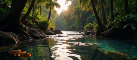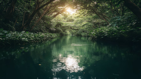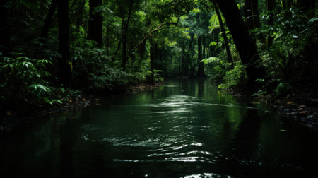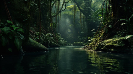 Beautiful deep tropical river jungles landscape scenery AI Generated Image