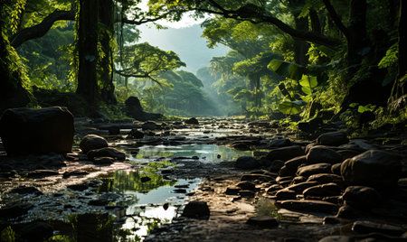 Tranquil scene nature beauty in a tropical rainforest generated by artificial intelligence
