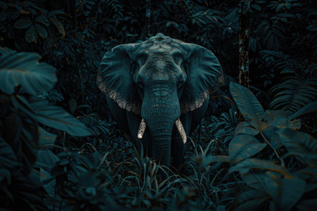 Elusive elephant peeks through a lush green jungle, the embodiment of nature's majesty