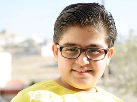 Young happy teenage boy on a studio background