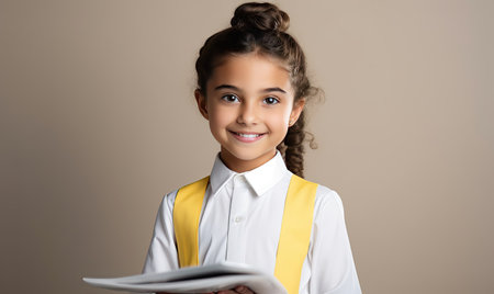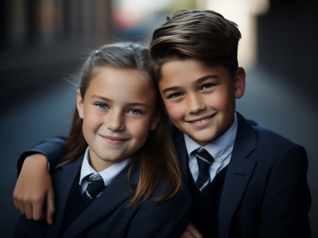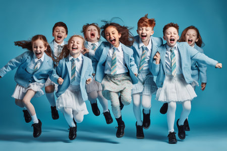 Generative AI : Happy children girls girlfriend schoolgirl student elementary school