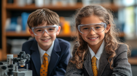 Indian school boy and girl or science student in uniform Using Molecular Model Kit for studying physics, selective focus