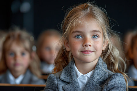 Portrait of a schoolgirl sitting in a classroom. Select focus.