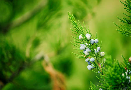 Juniper fruits close-up. Green beautiful plant. Landscaping decoration