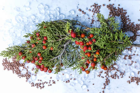 Christmas juniper with berries on chrystal ice decoration