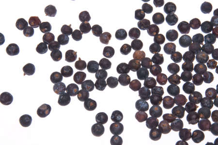 Dried juniper berries isolated on a white background.