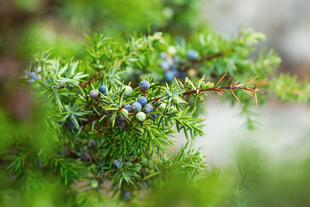 Juniper ripe and green seeds on a branch