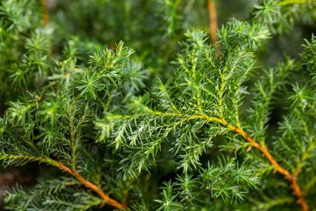 Close up view of beautiful juniper shrub with green branches