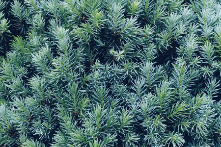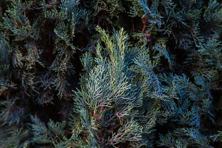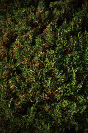 Dark green Juniper bush branches texture