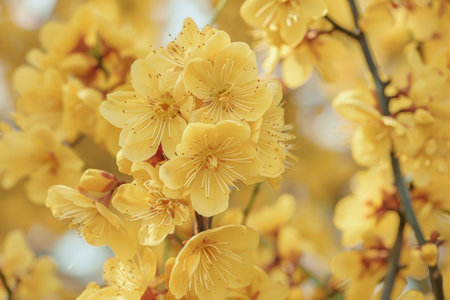 Plum blossom in the spring. Yellow flowers on a branch.