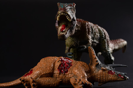 Tyrannosaurus Rex plastic model, closeup of photo.