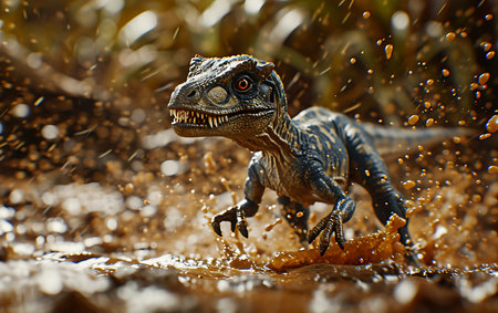 Dynamic dinosaur model captures attention in a vibrant jungle setting, highlighting details and colors that evoke a sense of adventure and imagination.