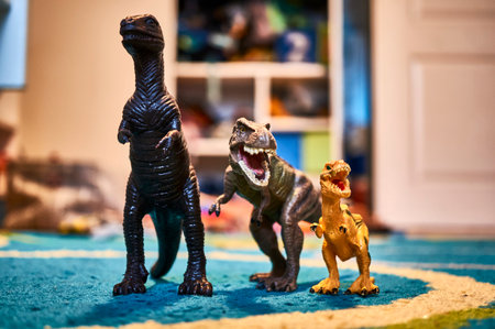 plastic dinosaur figures of extinct ancient creatures and favorite toys of kids