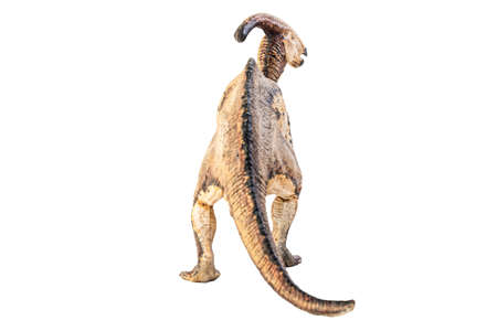 Parasaurolophus made out of plastic. dinosaur toy isolated on white background