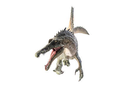 Spinosaurus made out of plastic. dinosaur toy isolated on white background