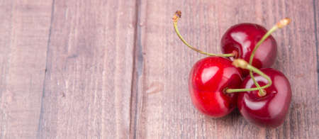 Fresh red cherry on wooden background, close up