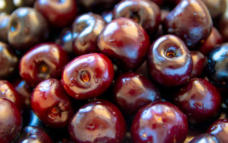 Heap of juicy wet cherries.
