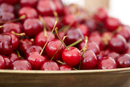 dish with fresh cherries closeup