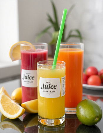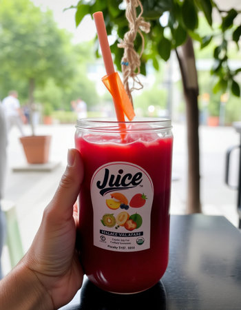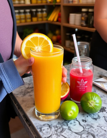 Freshly made juice in a vibrant market showcasing tropical flavors and freshness