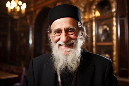 Smiling elderly Christian priest in church